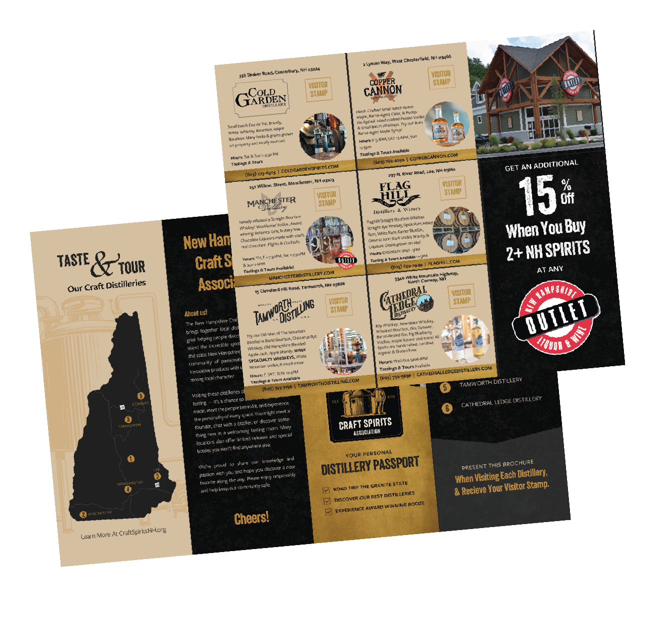 Download and print our brochure! Visit each location and be entered to win exclusive NH distillery tastings and apparel.